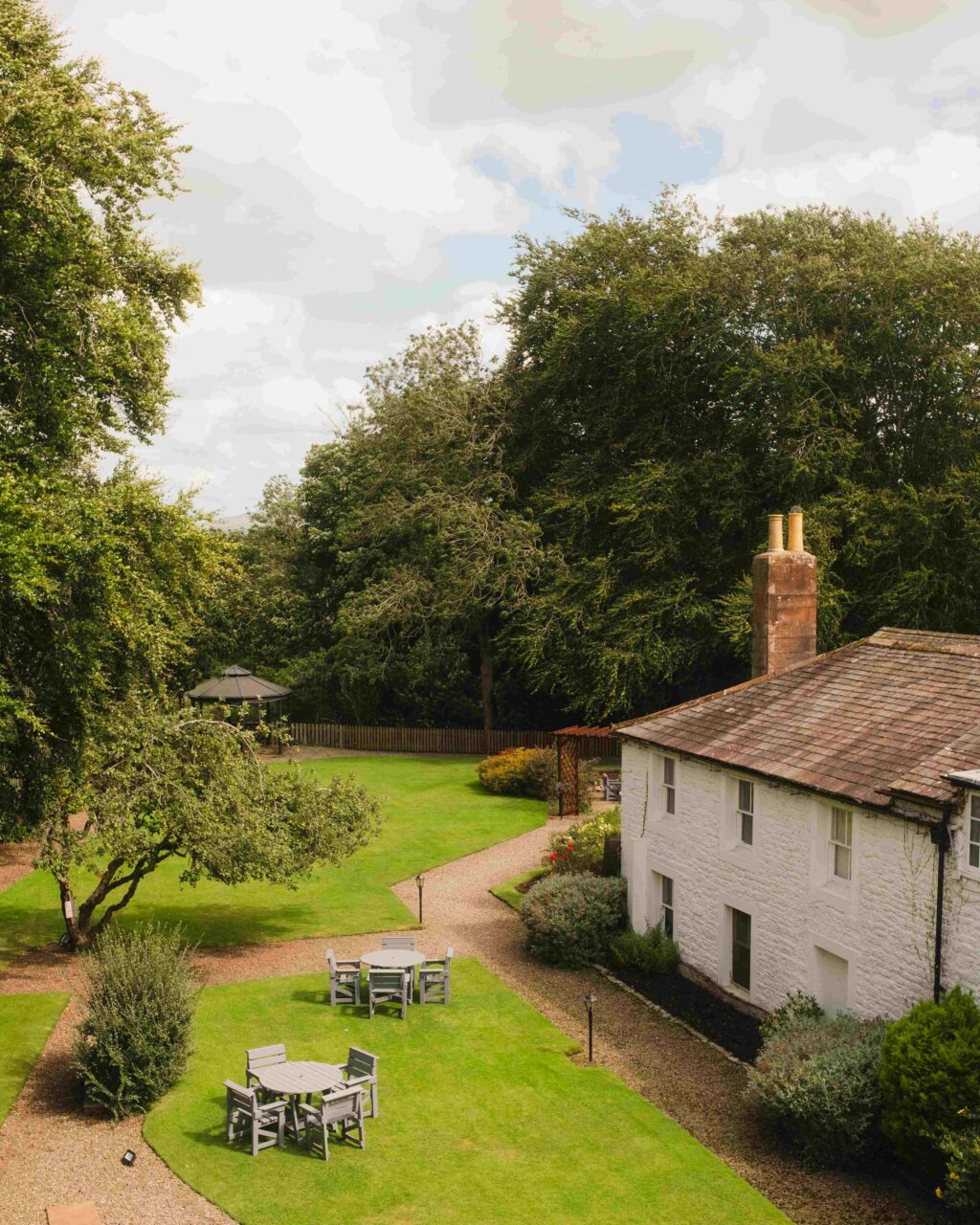 Private dining area, with twinkling lights, overlooking our beautiful gardens for up to 20 guests.