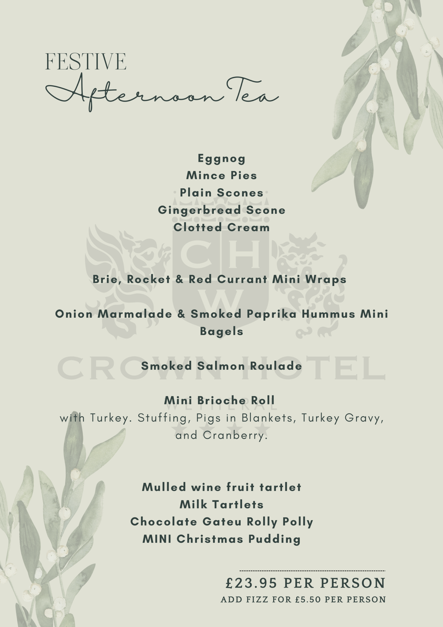 Our head chef has designed this new afternoon tea menu, with local produce and English classics in mind. Consisting of a selection of delicious finger sandwiches, freshly cooked fruit and plain scones and many tasty treats. This is an experience that should not be missed!